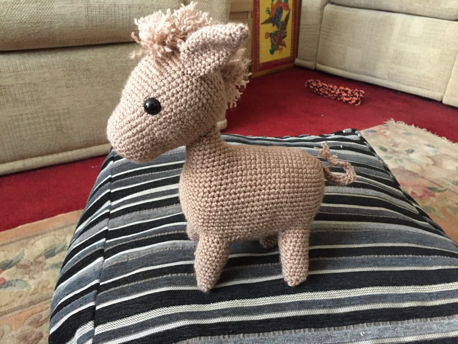 So there I was last week, going through crochet mags for quick makes suitable for the school fundraiser when Small pokes her finger at a novelty toy donkey and demands I start work.  He was massively cute, and there was enough colourwork to make it interesting.  I also have huge amounts of acrylic to work through, so I thought I would give ‘Pedro’ a stab.